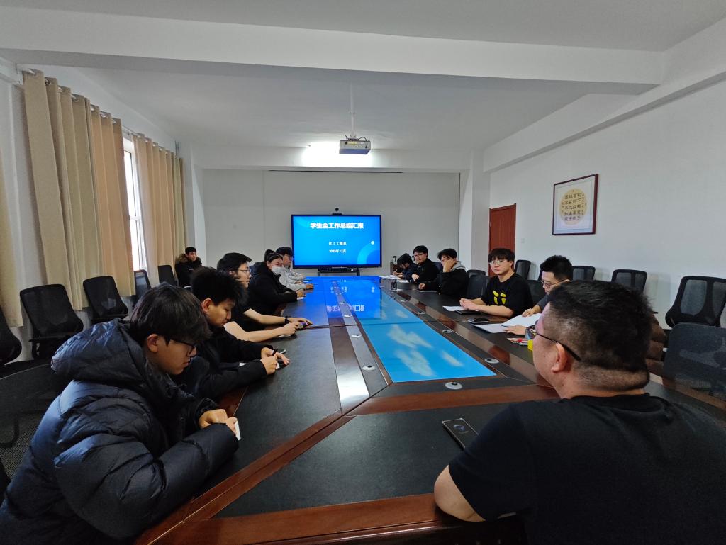 为全面总结 2025 年学生会工作成果,明确 2026 年发展方向,凝聚学生组织奋进力量,12 月 24 日,化工工程系学生会召开 2025 年度工作总结会,系主任黄文庆出席会议,学习文宣部、体育纪检部、社会实践部、社团部、权益部、秘书部部员参加会议。