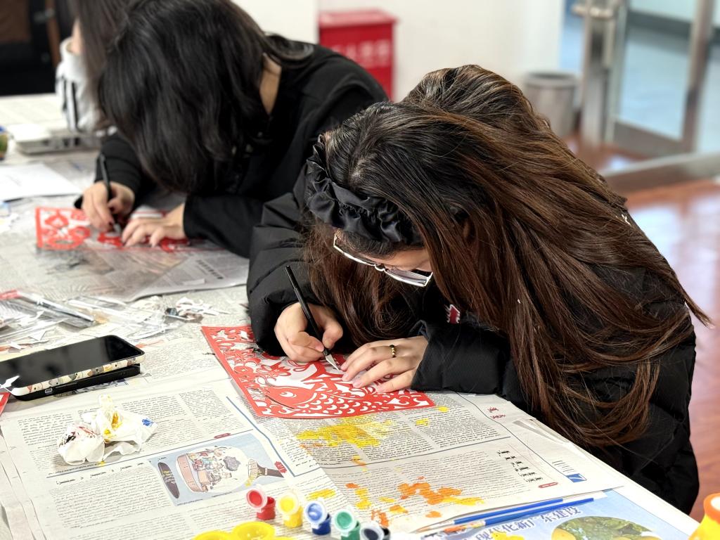 同学们细心雕琢喜庆纹样与奋进标语,尽显专注。